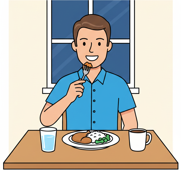 Eating breakfast is a basic morning activity in daily routine verbs in English.