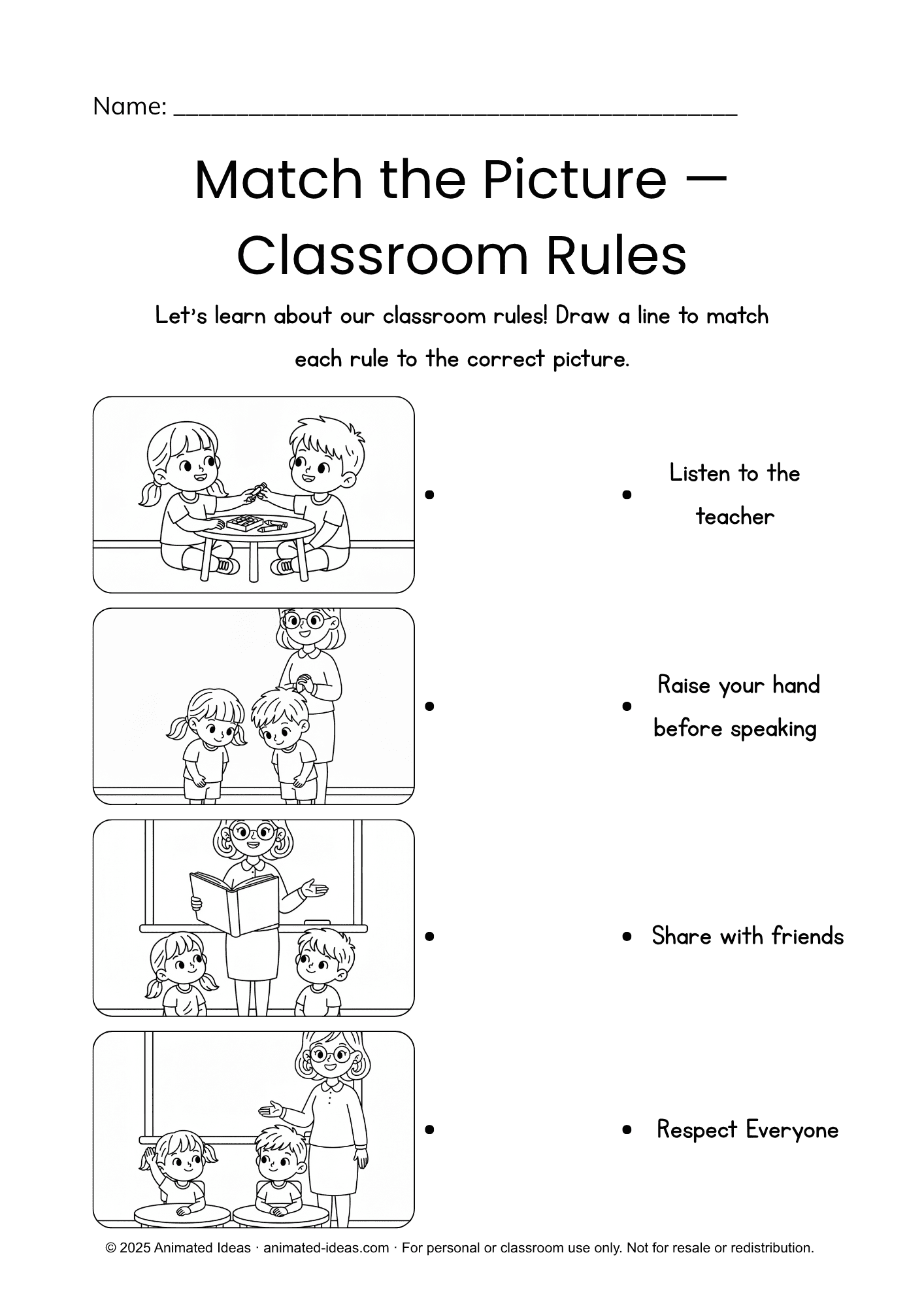 - Raise Your Hand – Encourages taking turns and speaking politely.