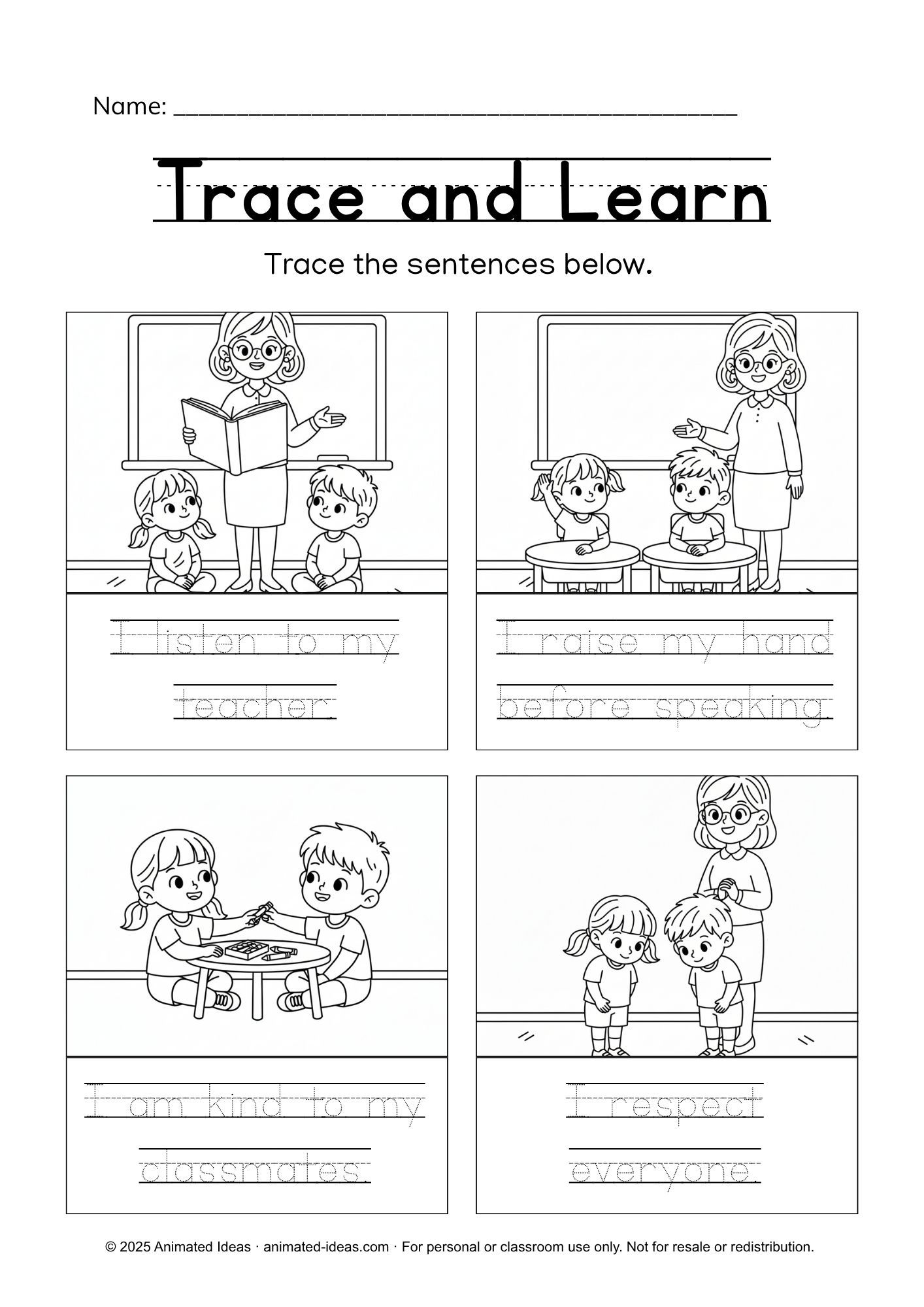 You can use these worksheets as part of your daily morning routine or classroom behavior lessons.