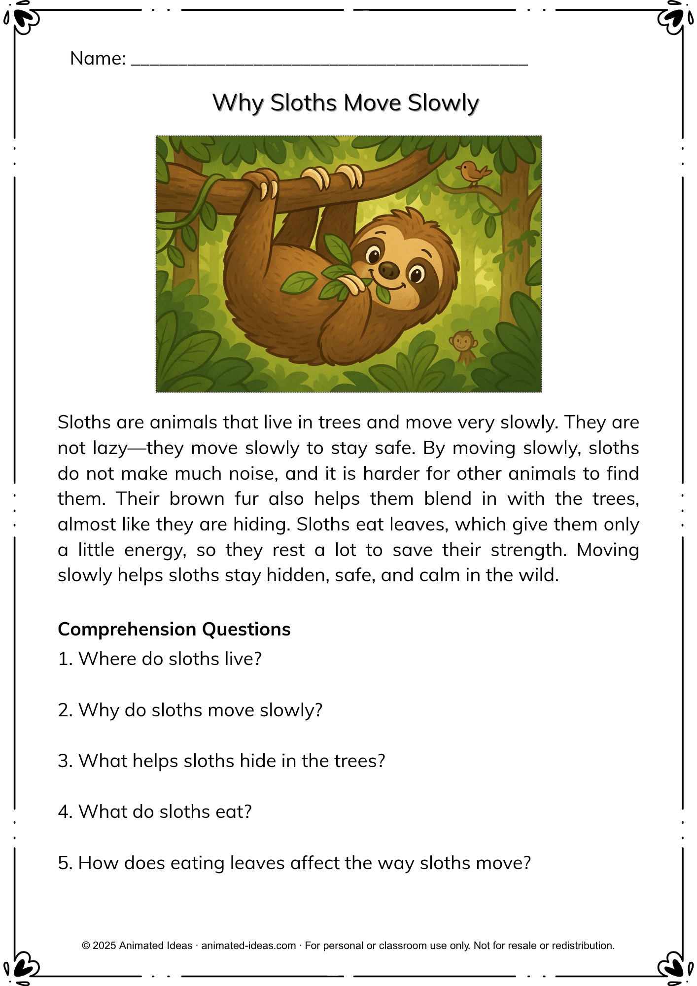 🦥 Why Sloths Move Slowly – Learn how sloths stay safe and calm in the trees.