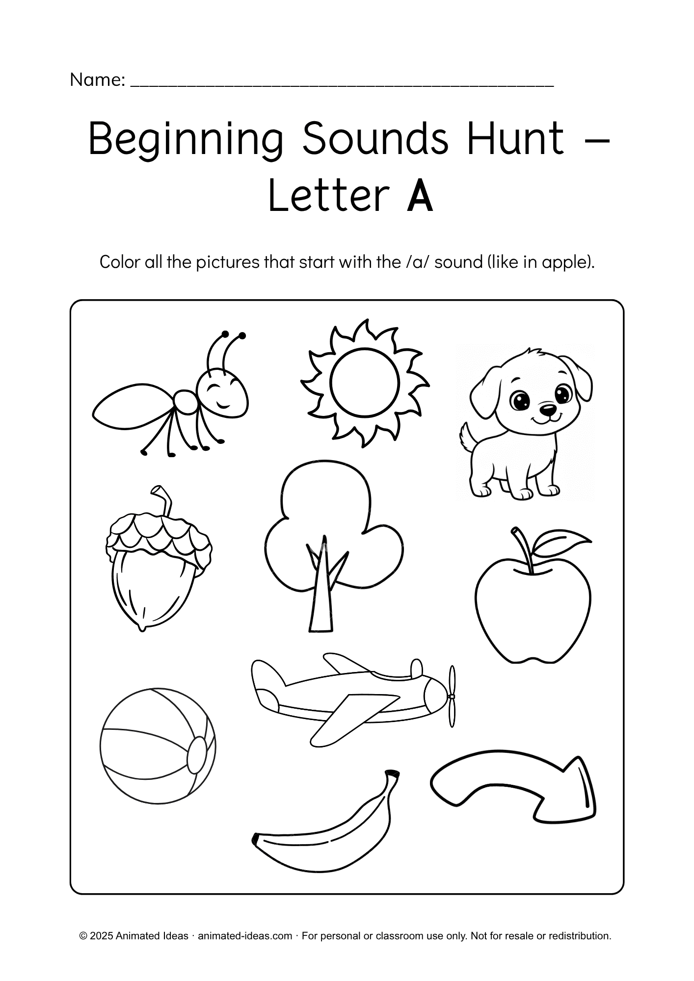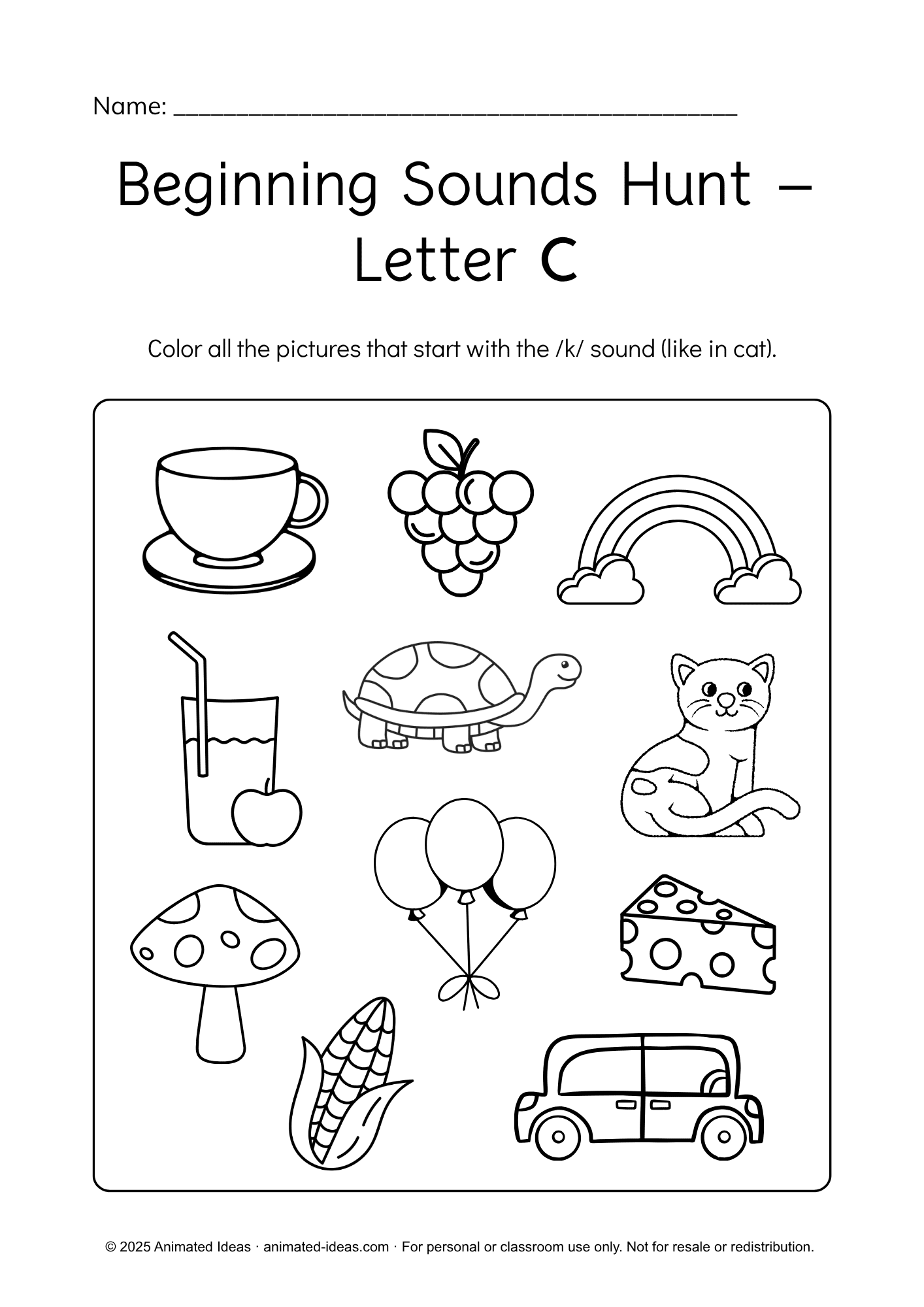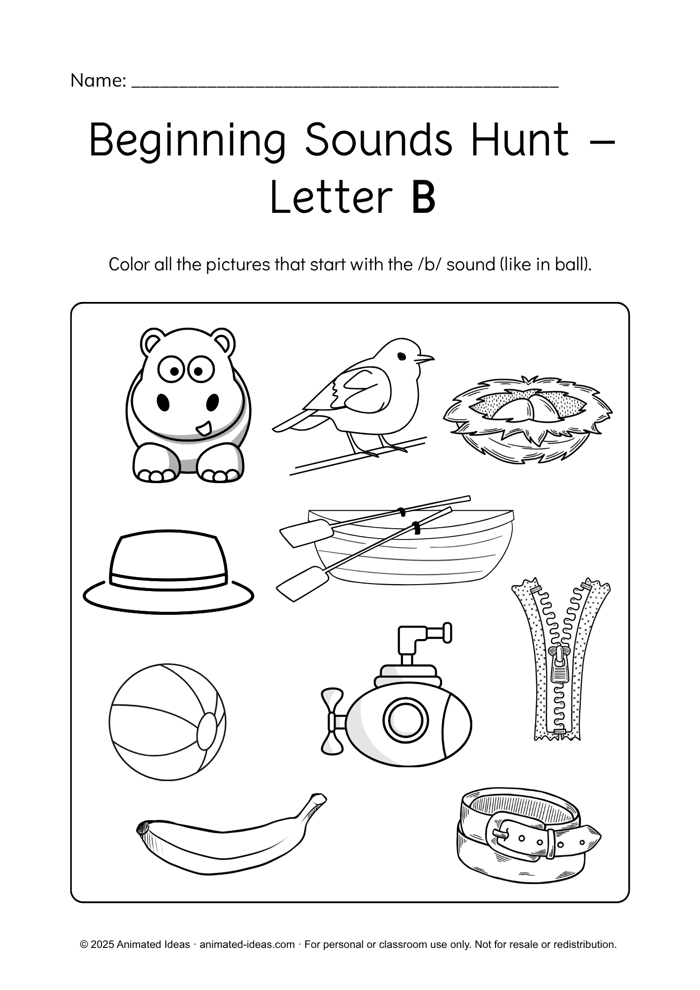 These Beginning Sounds Worksheets work well in many settings. They can be used during small-group lessons, morning work, literacy centers, or one-on-one instruction. Children can complete the activity with minimal guidance, which also builds independence. The black-and-white pages double as coloring sheets, giving extra fine motor practice.