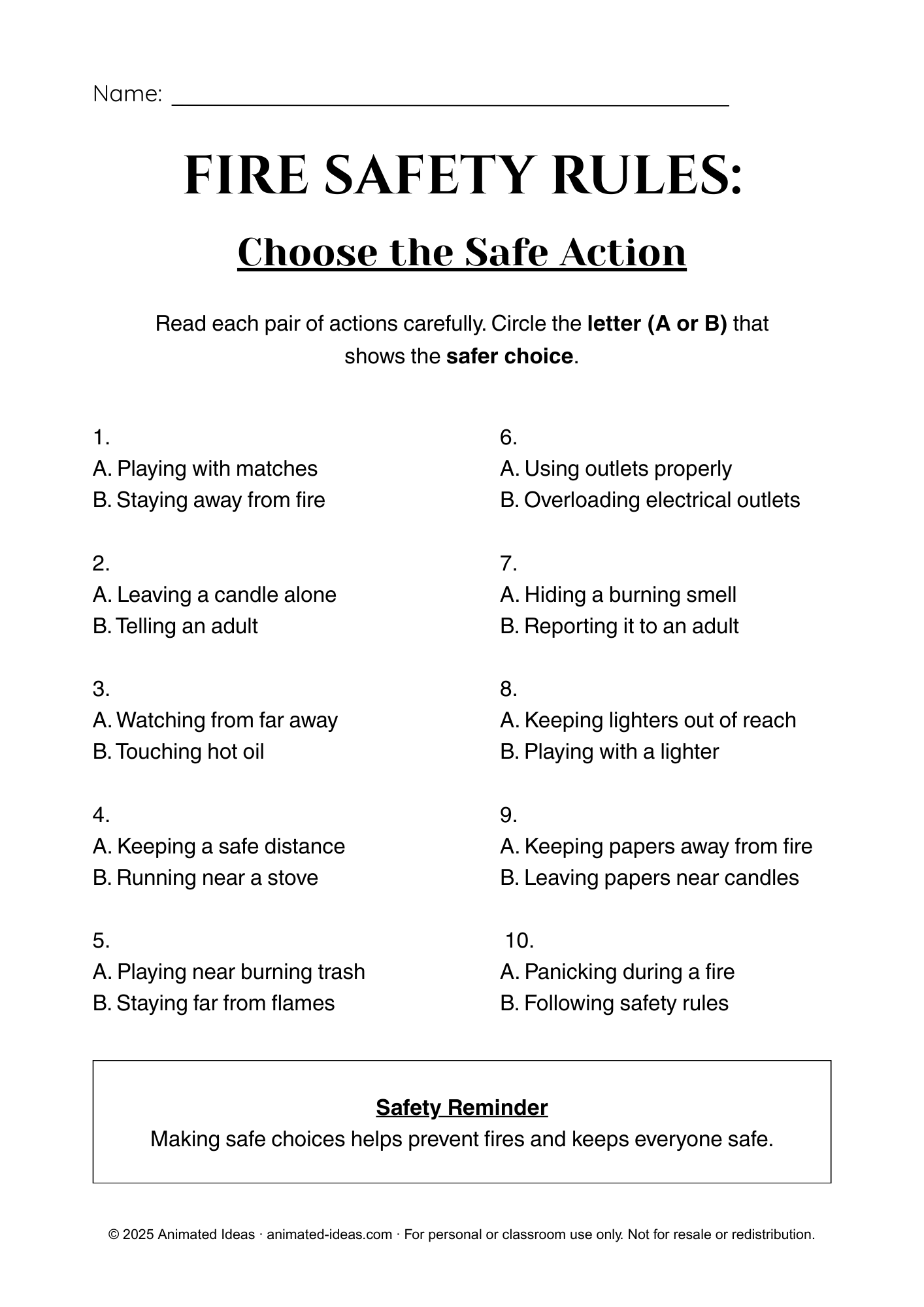 Fire Safety Rules: Choose the Safe Action