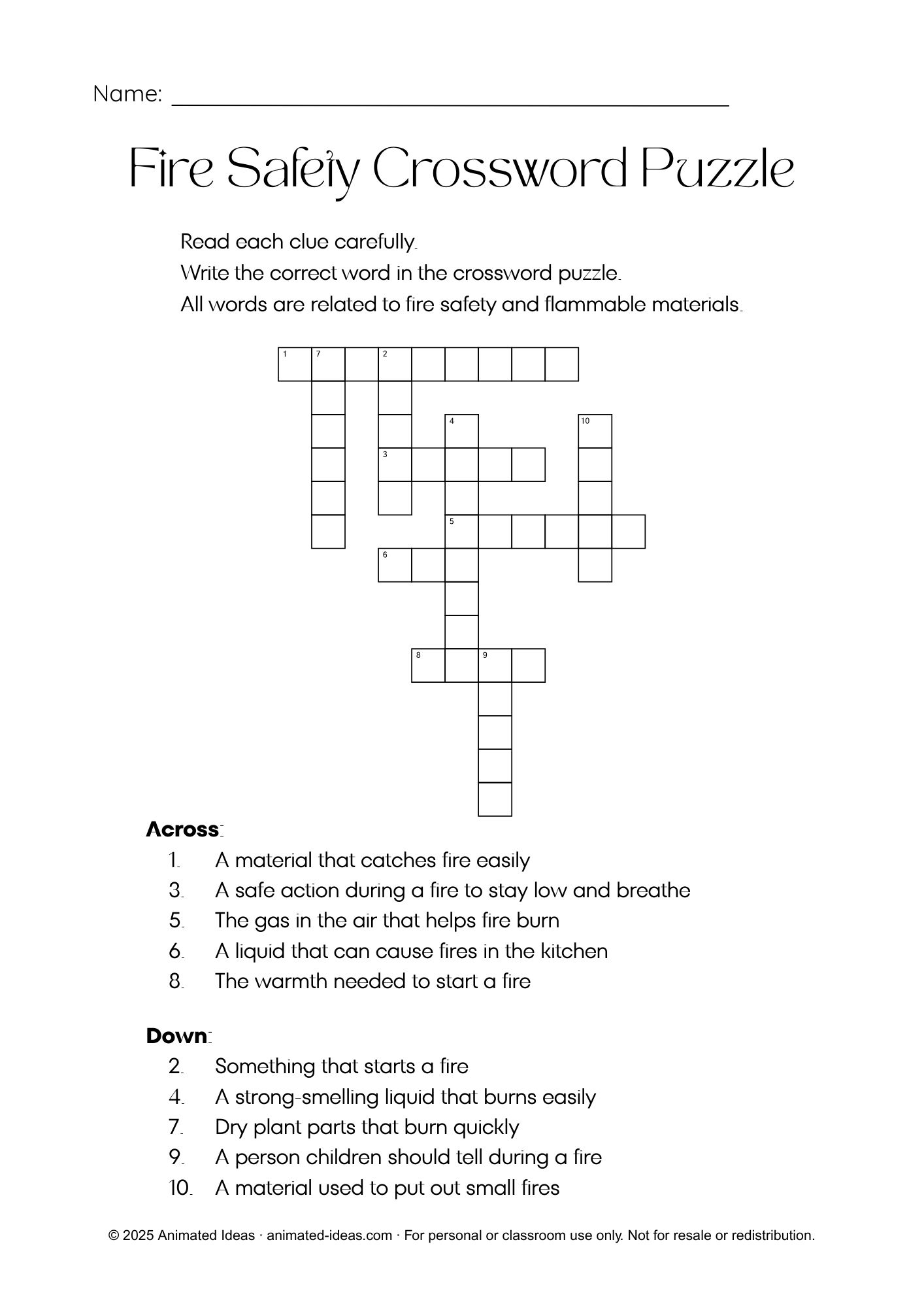 Fire Safety Crossword Puzzle