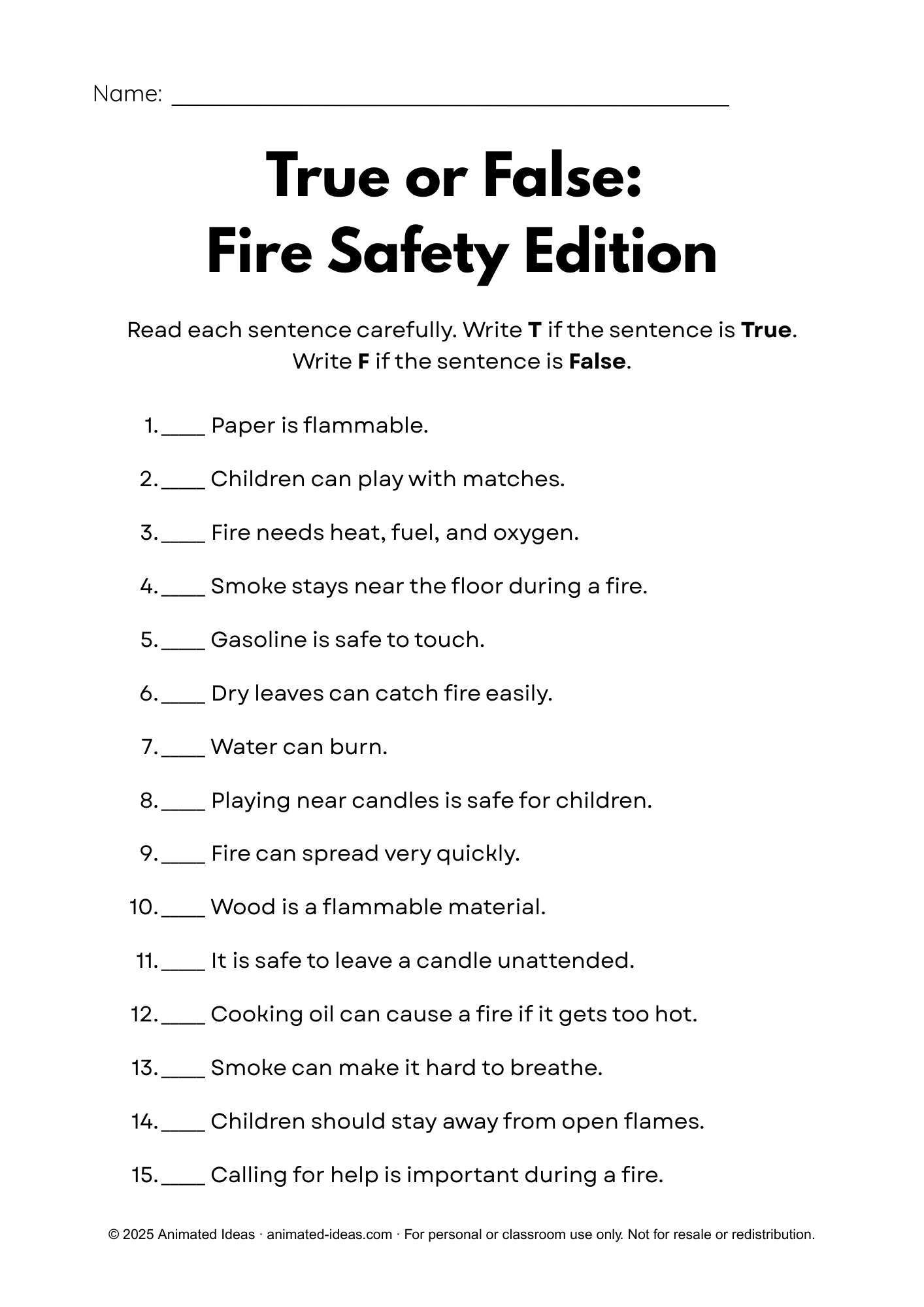 This activity supports early science concepts. It reinforces fire prevention awareness. It works well as an introduction lesson.