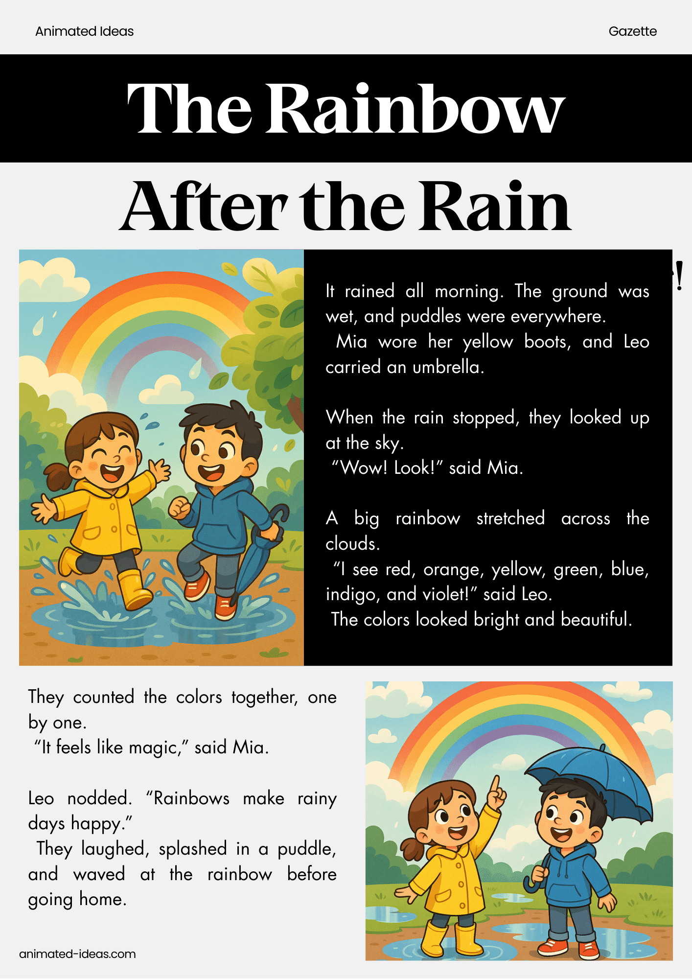 Bring joy to your child’s reading time with the Rainbow After the Rain Gazette – where every rainy day ends with magic! 🌈