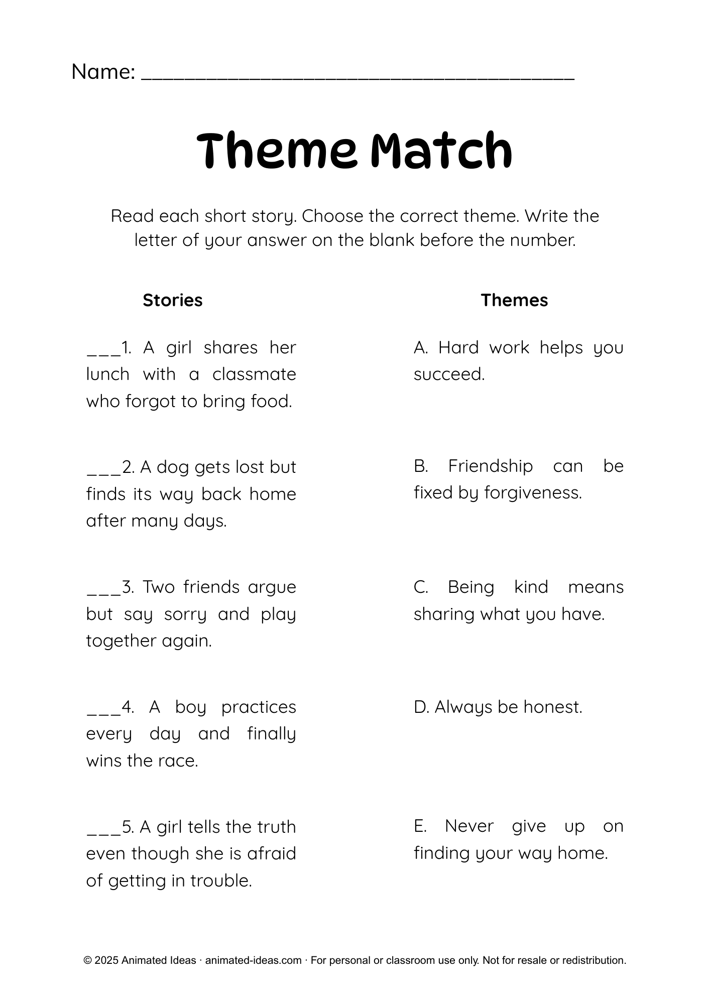 Fun and easy worksheets to help kids learn story elements like characters, setting, problem, solution, events, and theme.