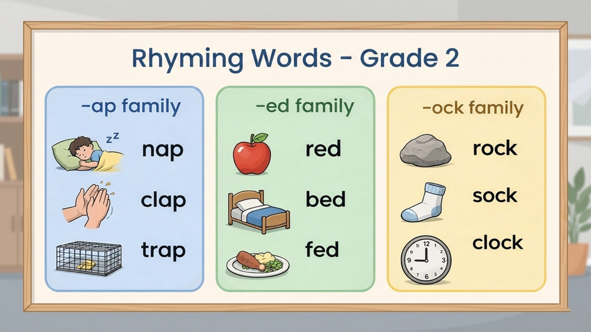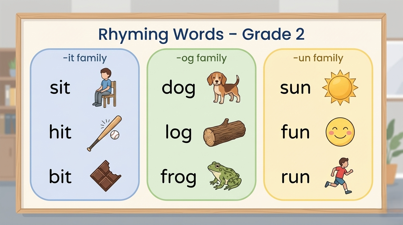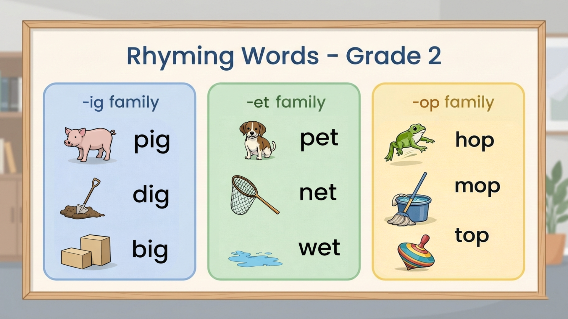 Rhyming is an essential early reading skill for second grade learners. It helps children hear, recognize, and understand sound patterns in words. Through rhyming, students strengthen phonemic awareness, which supports both reading and spelling development.