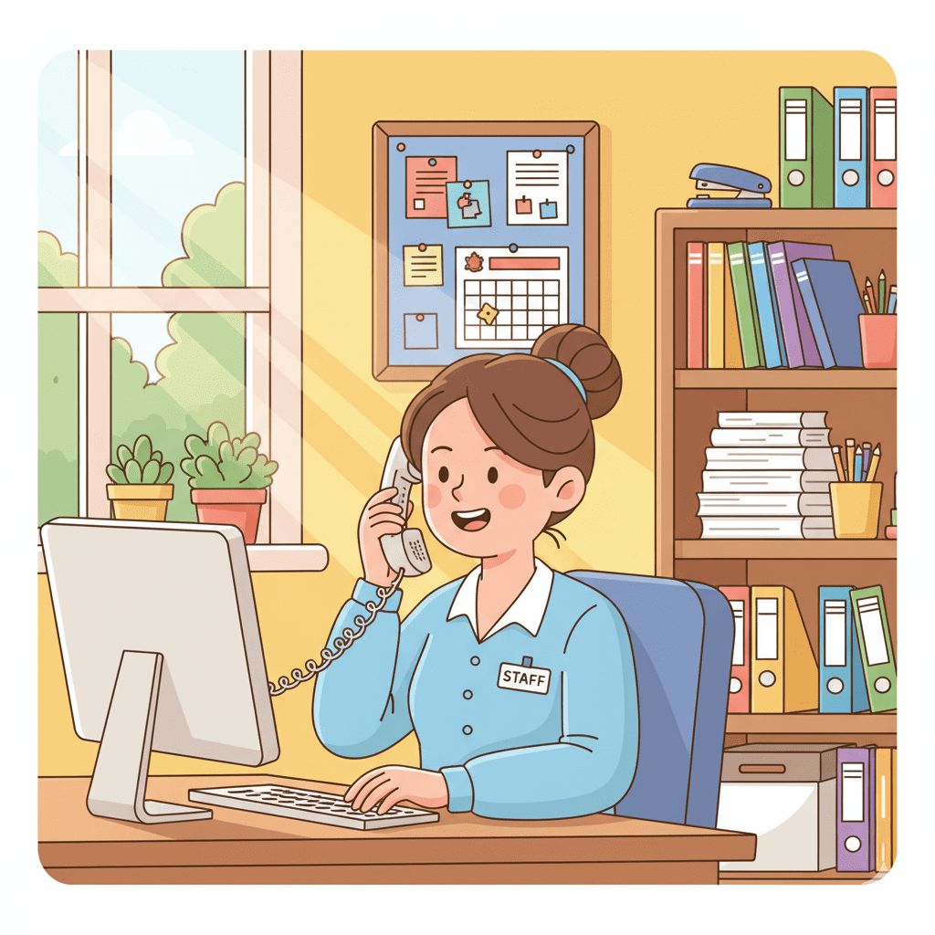 They answer phone calls, keep student files, and assist parents when they visit the school office.