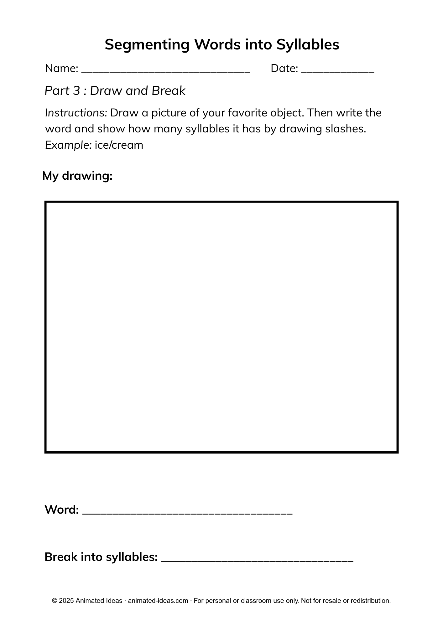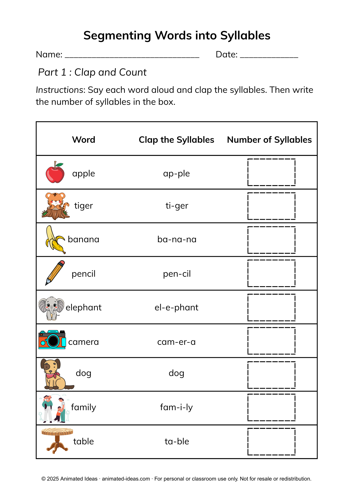 In addition, English vowel sounds and silent letters may make syllable segmentation more challenging. To support learners, model each syllable clearly and pronounce words slowly. Repeating the syllables aloud together helps children hear the correct breaks and strengthens their listening skills. - Lack of attention during syllable exercises
