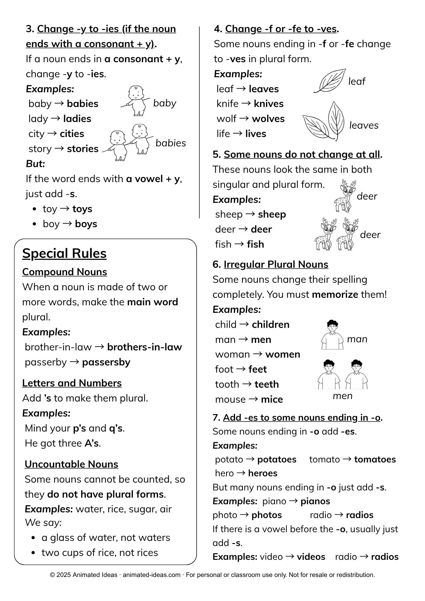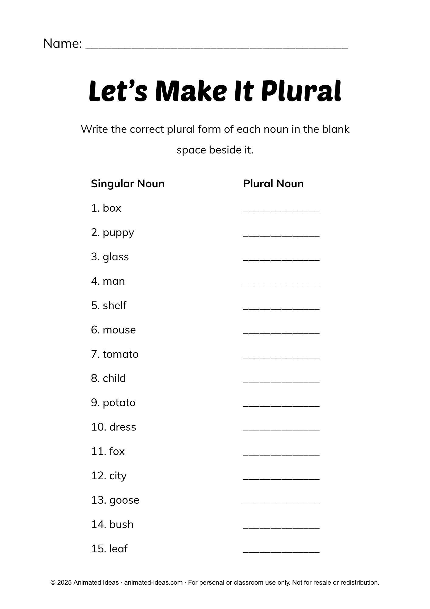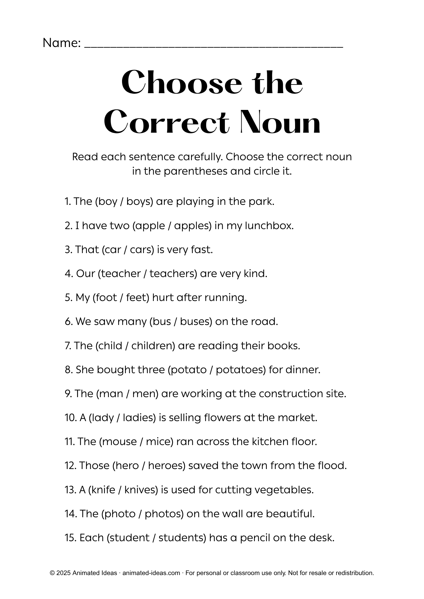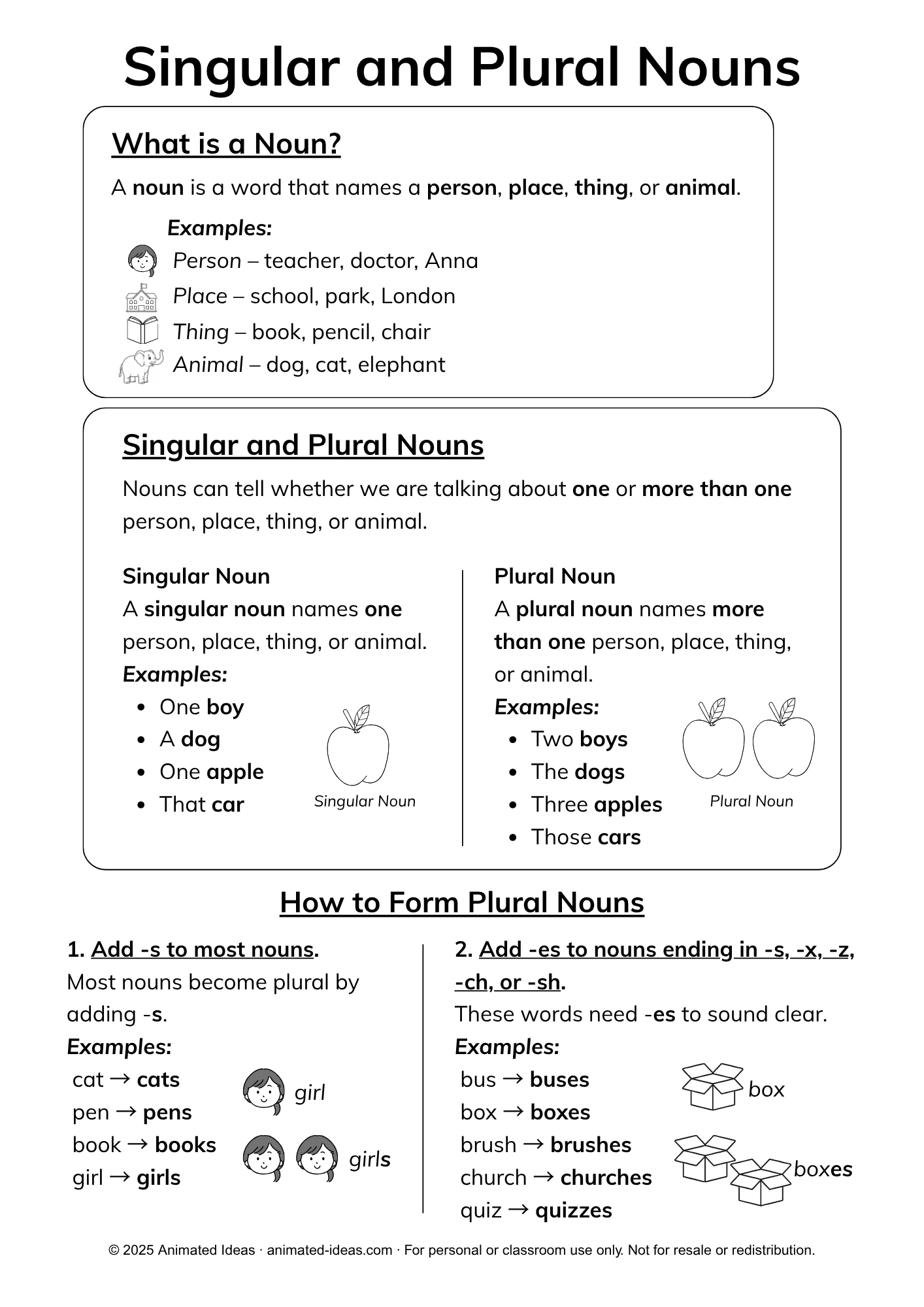Singular and Plural Nouns made easy! Enjoy this lesson with free worksheets for kids to practice and learn confidently.